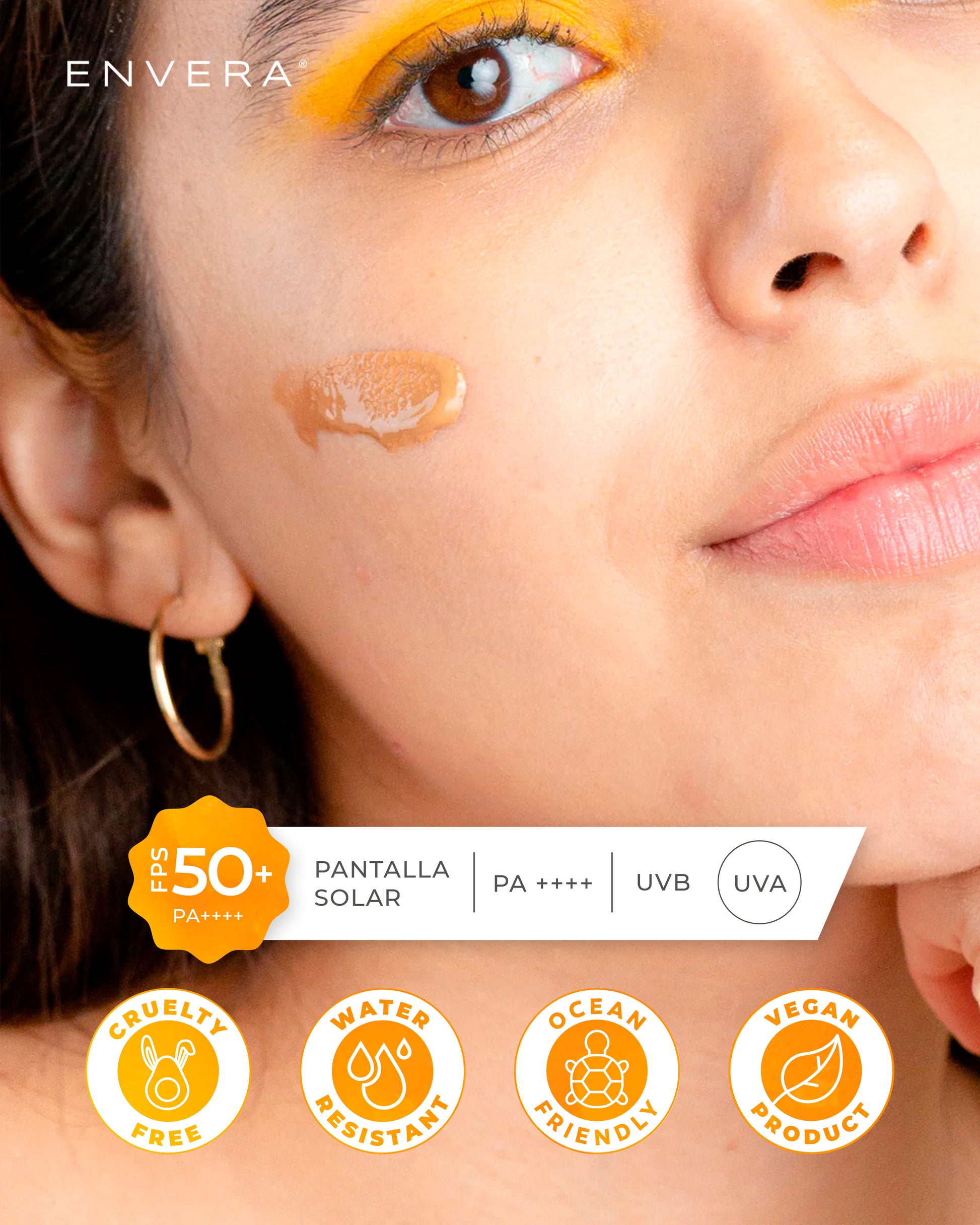 Con Dióxido de Titanio y libre de Oxibenzona (ingrediente que daña los corales).